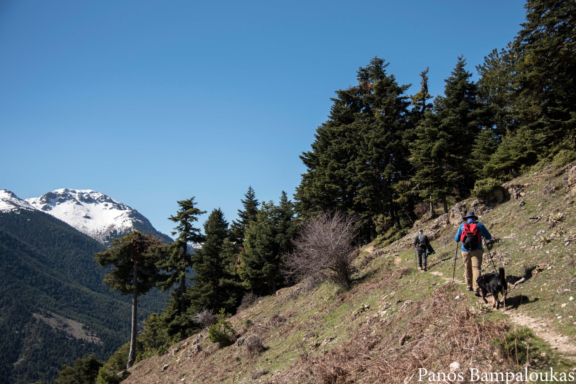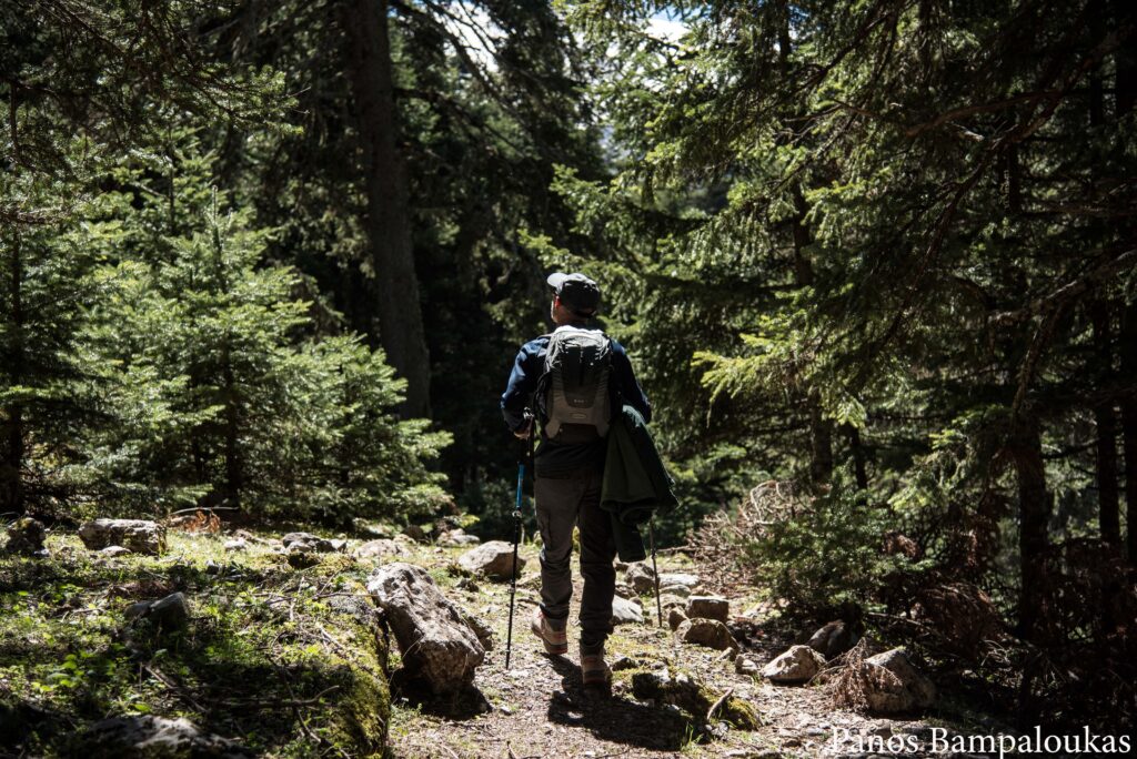 Η ανηφόρα από το ποταμάκι μέχρι το δρόμο είναι το πιο κουραστικό κομμάτι της διαδρομής. Έπειτα περπατάμε πάνω στο δασικό δρόμο με κατεύθυνση ξανά προς το βορά για να συναντήσουμε το χιονοδρομικό κέντρο από όπου είχαμε ξεκινήσει.